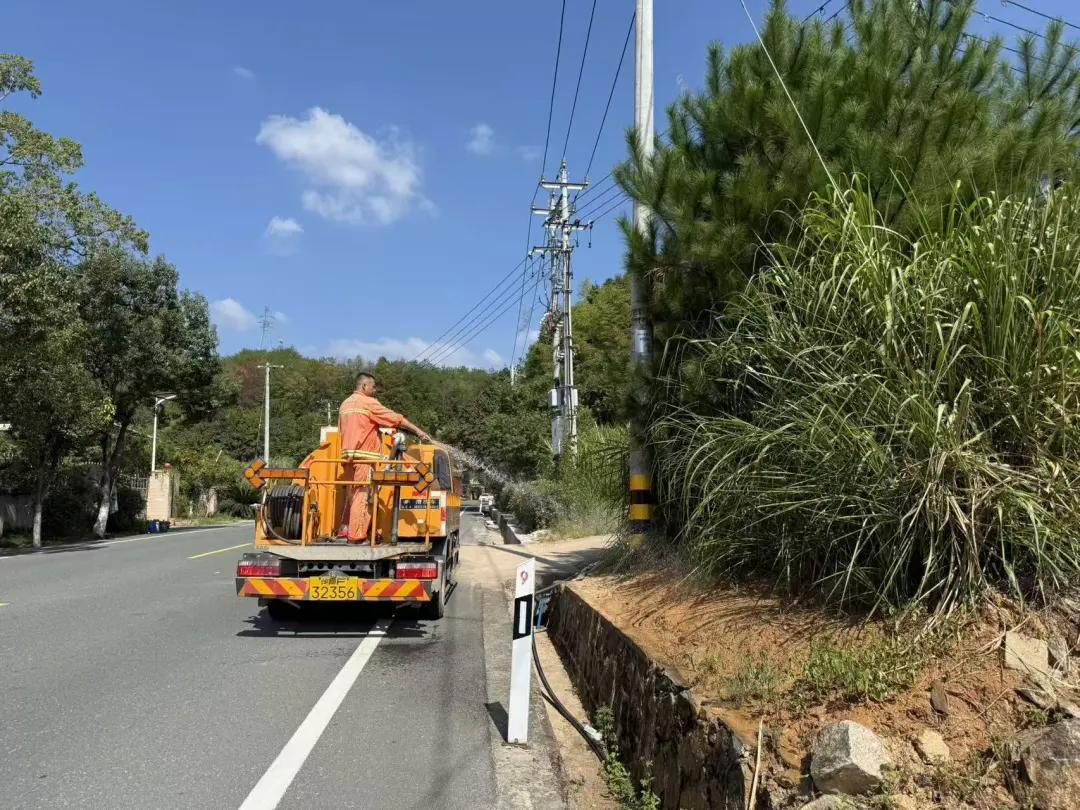 10月10日,在319國道連城縣朋口鎮段和宣和鎮鄉道文培線培田村段的養護現場,工人們正操作著專業的養護器械,有序開展路面清掃、邊溝疏通,綠化修剪等工作,全力推進路況提升,打造“暢、安、舒、美”出行環境。
